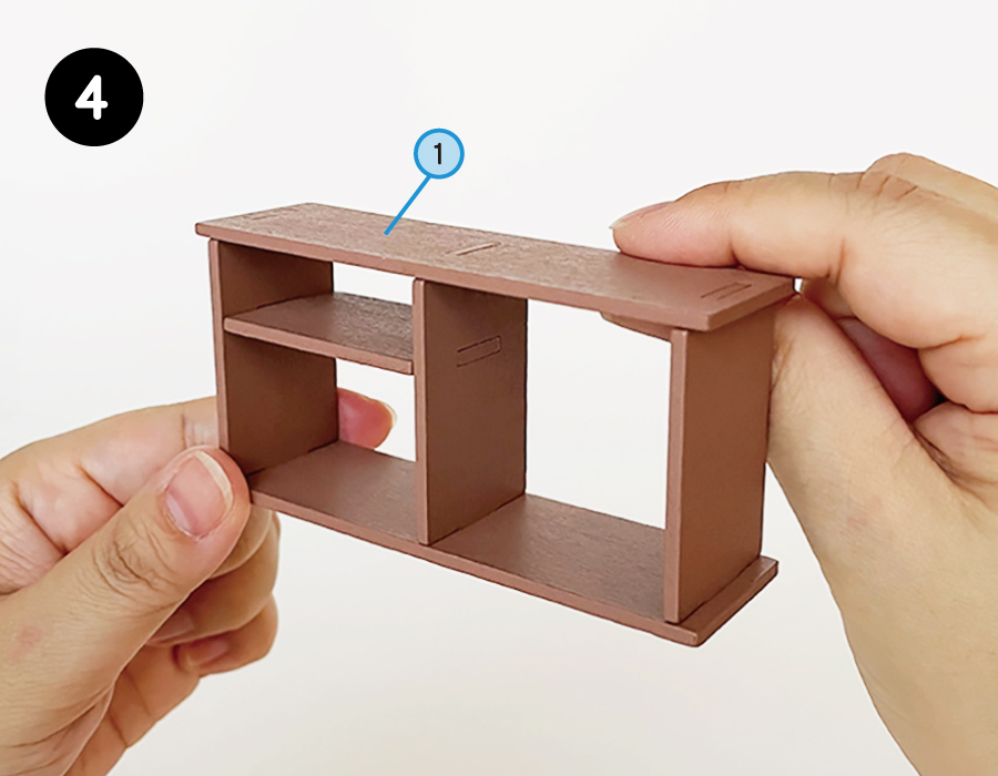 パーツ①の残り1枚を❸で組み立てたパーツの上にはめ込みます。